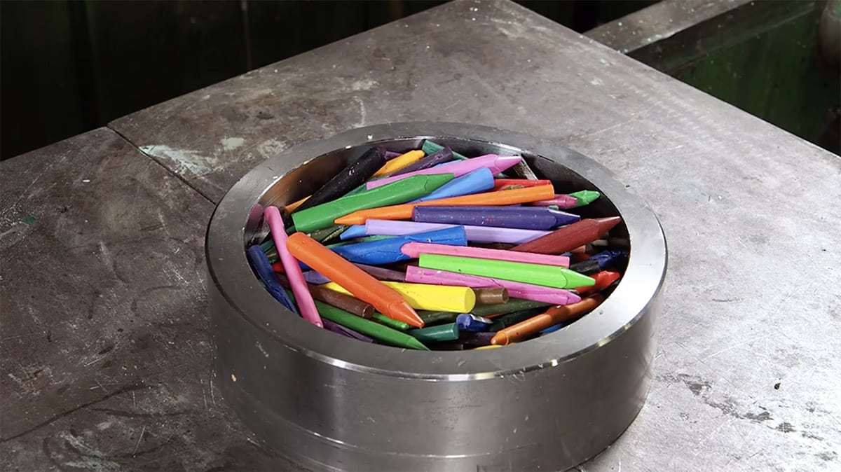Bút sáp màu sẽ phản ứng ra sao khi bị bỏ vào máy ép thủy lực?