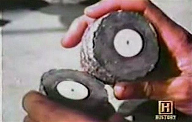 Mike Mikesell sau đó đã sử dụng lưỡi cưa kim cương để cắt ngang tinh hốc này, giống như cách ông vẫn làm với trước đó. Lưỡi cưa kim cương đã bị hỏng khi cắt ngang tinh hốc này, nhưng ông đã có một phát hiện rất ngạc nhiên. Ông phát hiện phía trong tinh hốc là một hình trụ tròn hoàn hảo của một vật liệu cứng và trắng, trông giống như sứ. Ở giữa là một trục kim loại tròn, sáng bóng, đường kính 2mm. Trục tròn kim loại dường như là chiếc nam châm. Bề mặt của vật thể này rất thô và được bao phủ bởi lớp vỏ hóa thạch.
