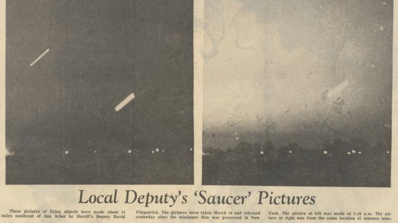 Tháng 3/1966, hơn 100 nhân chứng gần thành phố Dexter, Michigan, cho biết đã nhìn thấy một vật thể phát sáng bay lơ lửng trên bầu trời, rồi nhanh chóng bay ngang qua.