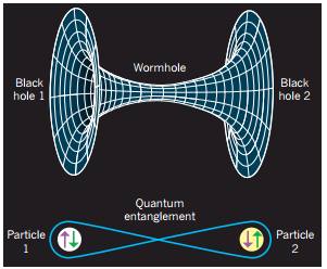 Các nhà vật lý giả định rằng sự liên thông giữa bằng lỗ sâu và liên thông bằng liên đới lượng tử có thể đồng nhất với nhau (xem hình 5)–> vậy ta có ER=EPR.