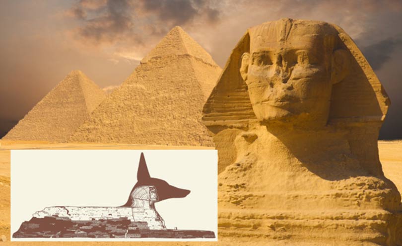 Giáo sư Robert Temple, tác giả của cuốn sách Egyptian Dawn (Bình minh Ai Cập) nhận định “thân của nhân sư không có hình dáng của họ nhà mèo, trong khi sư tử có lưng cong, và bờm của sư tử cũng không thấy xuất hiện”, thân của nhân sư có dáng của một con chó rừng đang thu mình lấy đà (Coppens, 2016). Có rất nhiều bằng chứng cụ thể hỗ trợ cho lý thuyết này: thứ nhất, Anubis là vị thần của những người đã chết và được cho rằng có vai trò bảo vệ người và ngăn những người không xứng đáng vượt sông Nile đến thế giới bên kia, giống như vai trò bảo vệ của con chó 3 đầu Cerberus trong thần thoại Hy Lạp.