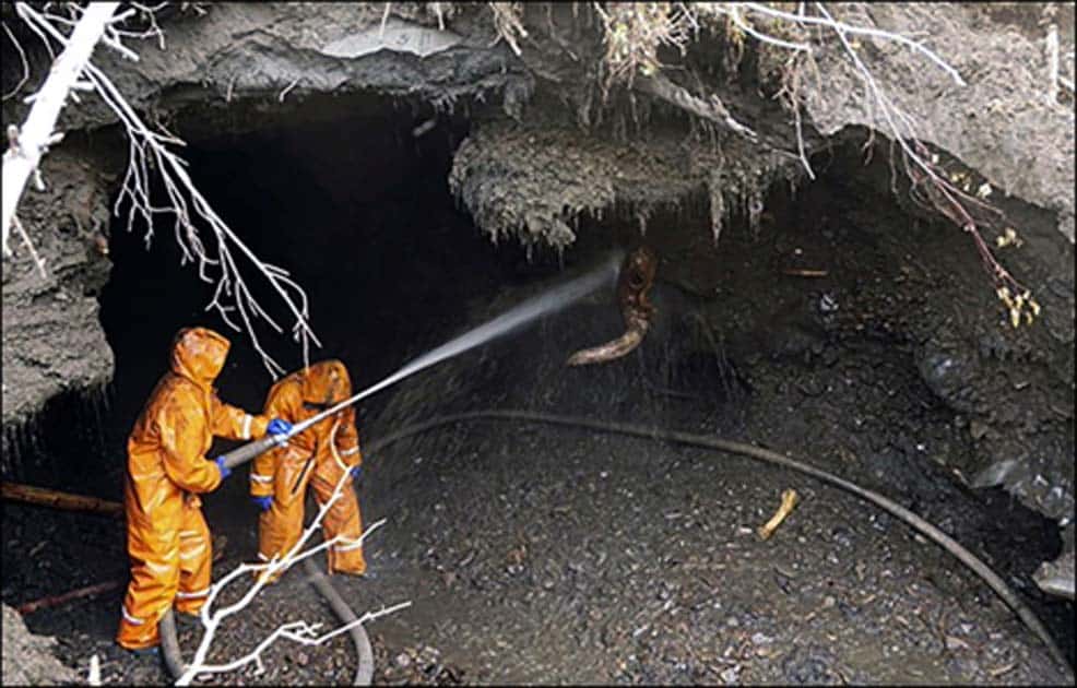 Những kẻ trộm cắp phá hoại ấy sử dụng vòi rồng phun nước công nghiệp áp suất cao (loại thường được dùng bởi lính cứu hỏa) để đào bới xương và hài cốt. Loại súng nước này có thể phá vỡ lớp băng vĩnh cửu và cũng phá hủy luôn các di tích.