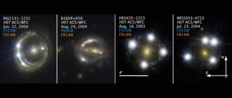 Trình tự lóe sáng này cho phép các nhà nghiên cứu có thể đo được thời gian trễ giữa mỗi hình ảnh khi ánh sáng thấu kính truyền dọc theo đường đi của nó đến Trái Đất. Sau đó, các nhà thiên văn học có thể tính được khoảng cách từ các thiên hà đến các tinh thể Quasar, và tính được khoảng cách từ Trái Đất đến các thiên hà. Bằng cách so sánh các giá trị khoảng cách này, các nhà nghiên cứu đã đo được tốc độ giãn nở của vũ trụ bằng hằng số Hubble.