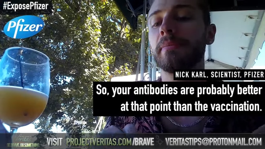Tổ chức giám sát phi lợi nhuận Project Veritas mới đây đã đăng tải một video, trong đó 3 nhà khoa học làm việc cho hãng sản xuất vắc-xin COVID-19 Pfizer đã đưa ra nhận định rằng miễn dịch tự nhiên có thể mang lại hiệu quả bảo vệ trước virus corona tương đương, thậm chí tốt hơn vắc-xin. Đồng thời, hãng dược phẩm còn yêu cầu nhân viên của mình giữ bí mật trước công chúng.