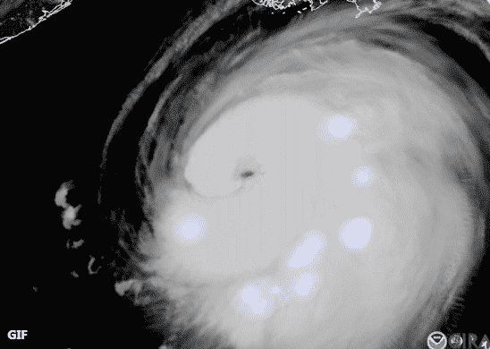 Bức ảnh động này cho thấy rõ mắt bão và sấm chớp liên tục xuất hiện xung quanh cơn bão.