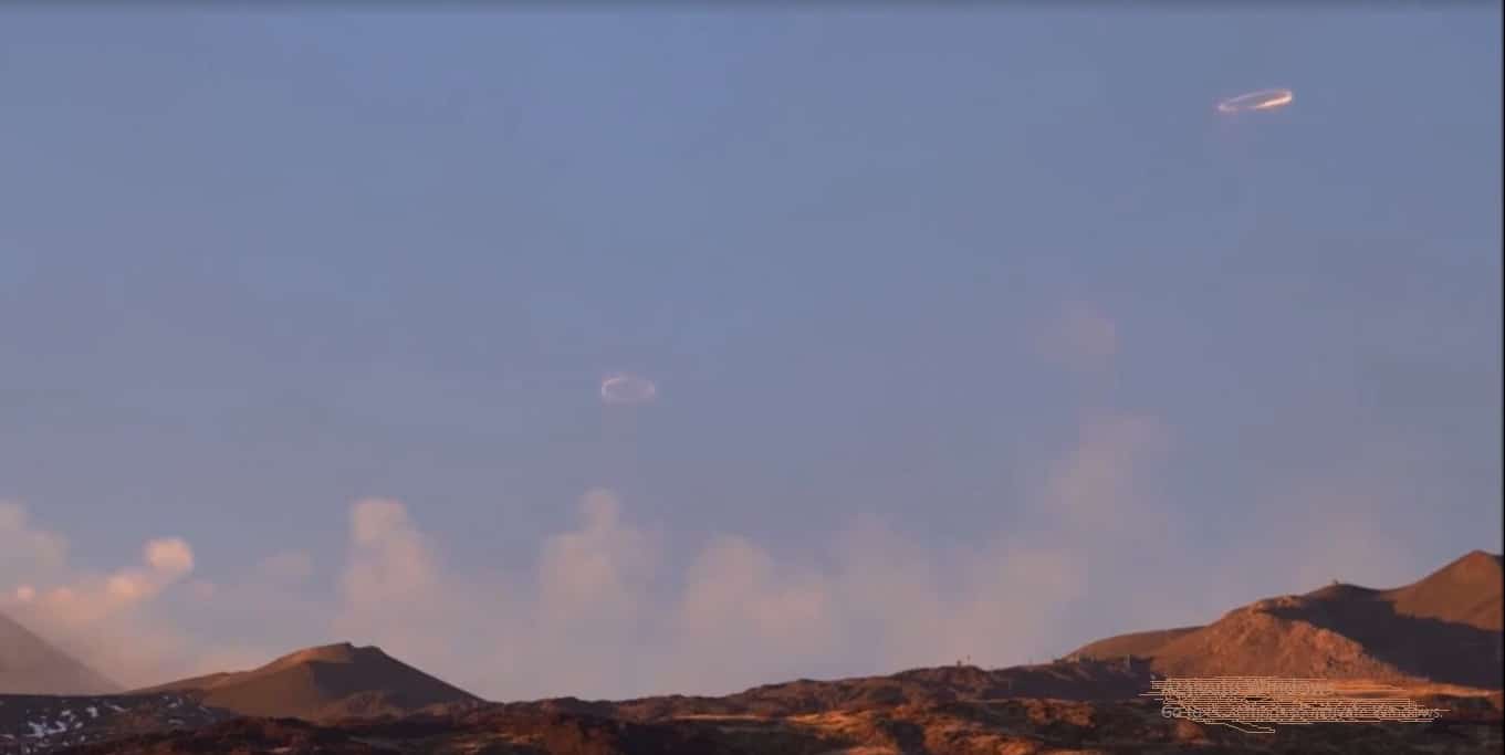 Các khí bên trong núi lửa Etna (tại Italy) kết hợp với hình dạng miệng phun cân đối tạo ra những vòng tròn hơi nước độc đáo bay lên trời.