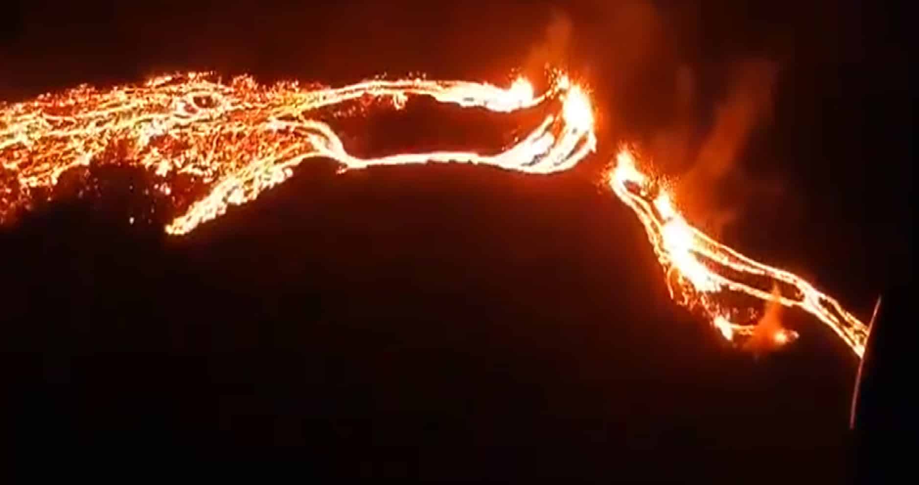 Một máy bay không người lái đã tiếp cận bán đảo Reykjanes, Iceland để ghi lại những hình ảnh về cảnh tượng núi lửa Fagradalsfjall phun trào nham thạch sau khoảng 6.000 năm “ngủ quên.” Ngọn núi lửa này cách thủ đô Reykjavik khoảng 30 km về phía tây nam, phun trào vào đêm ngày 19/3 vừa qua (theo giờ địa phương), tuy nhiên, dòng dung nham vẫn chưa có dấu hiệu ngừng trào lên khỏi miệng núi. Sau vụ phun trào, nhiều chuyến bay đến và đi từ thủ đô của Iceland đã bị hủy bỏ do sân bay bay quốc tế Keflavik nằm gần khu vực núi lửa.