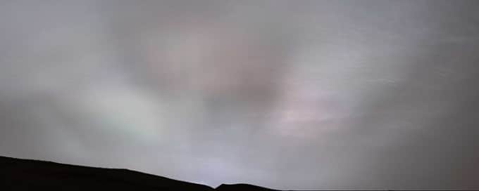 Ngoài hình ảnh các tia nắng, Curiosity còn chụp được dải mây nhiều màu sắc giống hình lông vũ hôm 27/1. Khi được ánh Mặt Trời chiếu sáng, một số loại mây có thể trở thành mây ngũ sắc với màu sặc sỡ như cầu vồng.