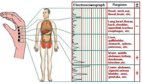 Giáo sư Trương đã phát minh ra một chiếc máy gọi là ElectroEciwoGraph, tạm gọi là “Máy quét ECIWO.” Chiếc máy này sẽ quét xương bàn tay thứ 2 của bệnh nhân bằng sóng siêu âm, phát hiện ra các bộ phận trong cơ thể gặp vấn đề và vị trí cần châm cứu hoặc xoa bóp dựa vào sóng siêu âm phản xạ về. Sau đó, các bác sĩ sẽ tiến hành châm cứu vào điểm này. Nhờ đó bệnh nhân có thể khỏi bệnh. [5]