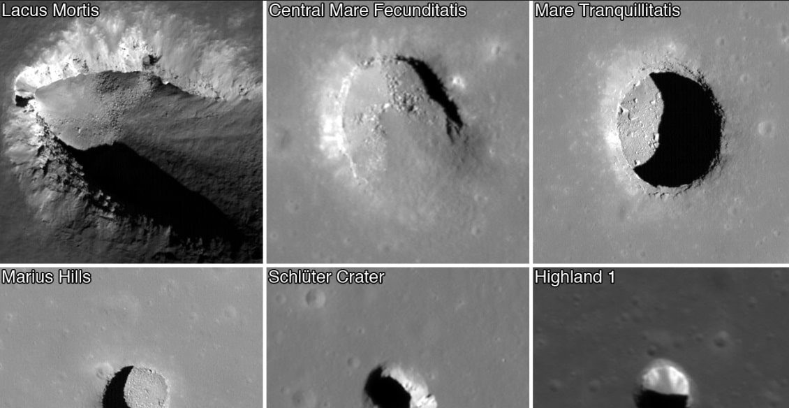 Những miệng hố được phát hiện trên Mặt Trăng được cho là lối dẫn vào ống dung nham. (Ảnh: NASA - Cơ quan Hàng không Vũ trụ Mỹ)