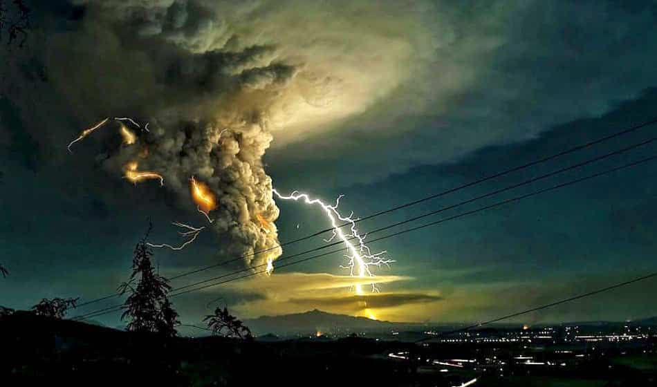 Ngày 12/01 vừa qua, sau hơn 40 năm ngừng hoạt động, núi lửa Taal (cách thủ đô Manila của Philippines khoảng 65km) đã “thức giấc” và phun trào trở lại. Kết quả là, có rất nhiều khói bụi thải ra bầu khí quyển và tạo thành cột khói khổng lồ cao chừng 10km hướng thẳng lên trời, xen lẫn sấm chớp kinh hoàng, kèm theo đó là nguy cơ xuất hiện sóng thần.