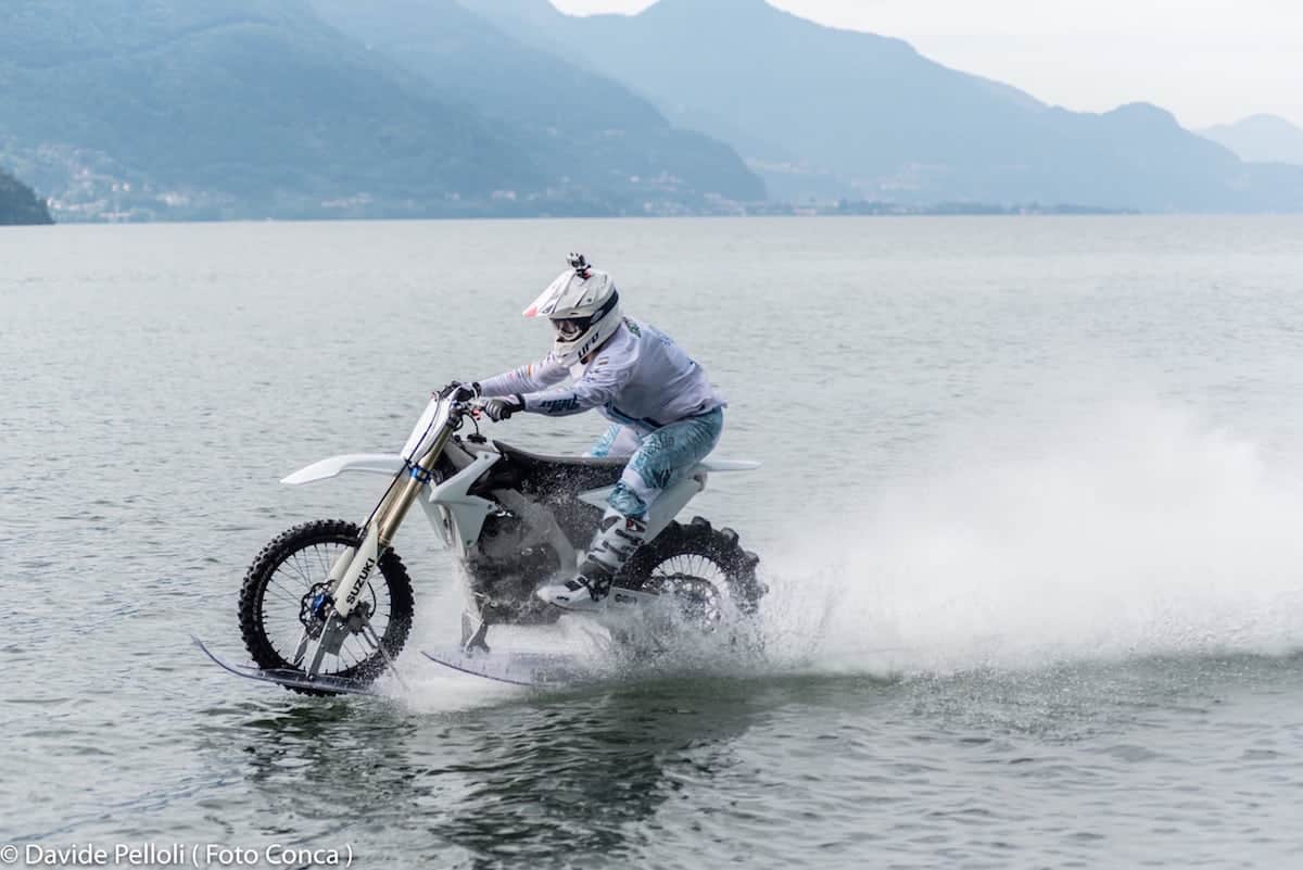 Năm ngoái, tay đua Luca Colombo đã lái chiếc Suzuki 450 của mình trên mặt hồ Como, thiết lập kỷ lục thế giới về quãng đường đi xe mô-tô (không phải mô-tô nước) trên mặt nước ngọt.