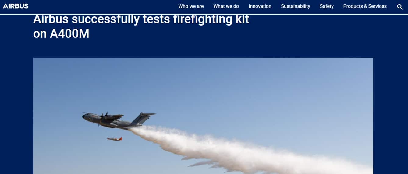Cụ thể, Nhánh Phòng vệ và Không gian của nhà sản xuất máy bay châu Âu Airbus (Airbus Defense and Space) vừa thử nghiệm thành công bộ công cụ chữa cháy có thể tháo rời cho máy bay Airbus A400M. Thiết bị mới cho phép máy bay có thể dội 20 tấn nước trong chưa đầy 10 giây, qua đó hỗ trợ hiệu quả dập các đám cháy rừng.