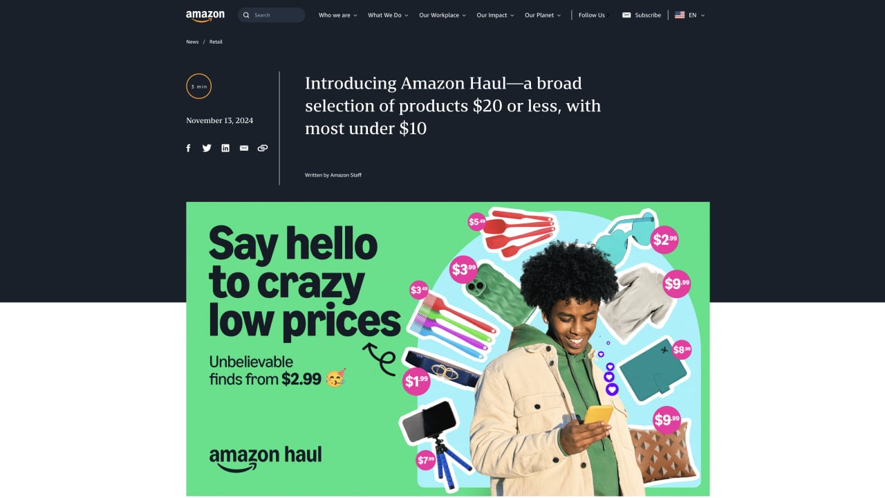 Amazon ra mắt cửa hàng giá rẻ Haul để cạnh tranh với Shein và Temu