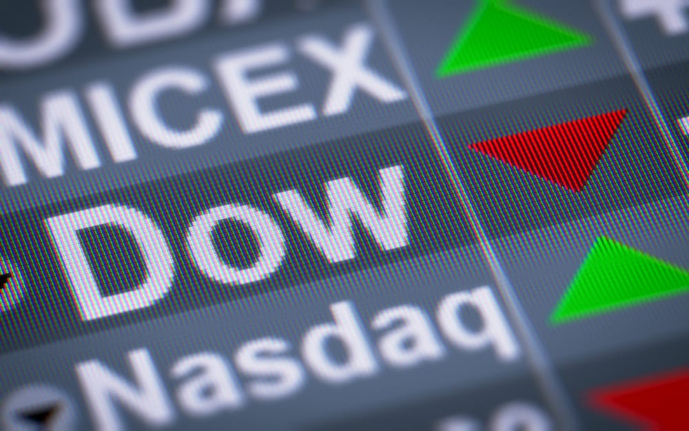 Chỉ số Dow Jones quay đầu giảm mạnh hơn 1.000 điểm sau khi FED thông báo tăng lãi suất thị trường lên nửa điểm phần trăm vào hôm 4/5. (Ảnh minh họa: Pavel Ignatov/Shutterstock)