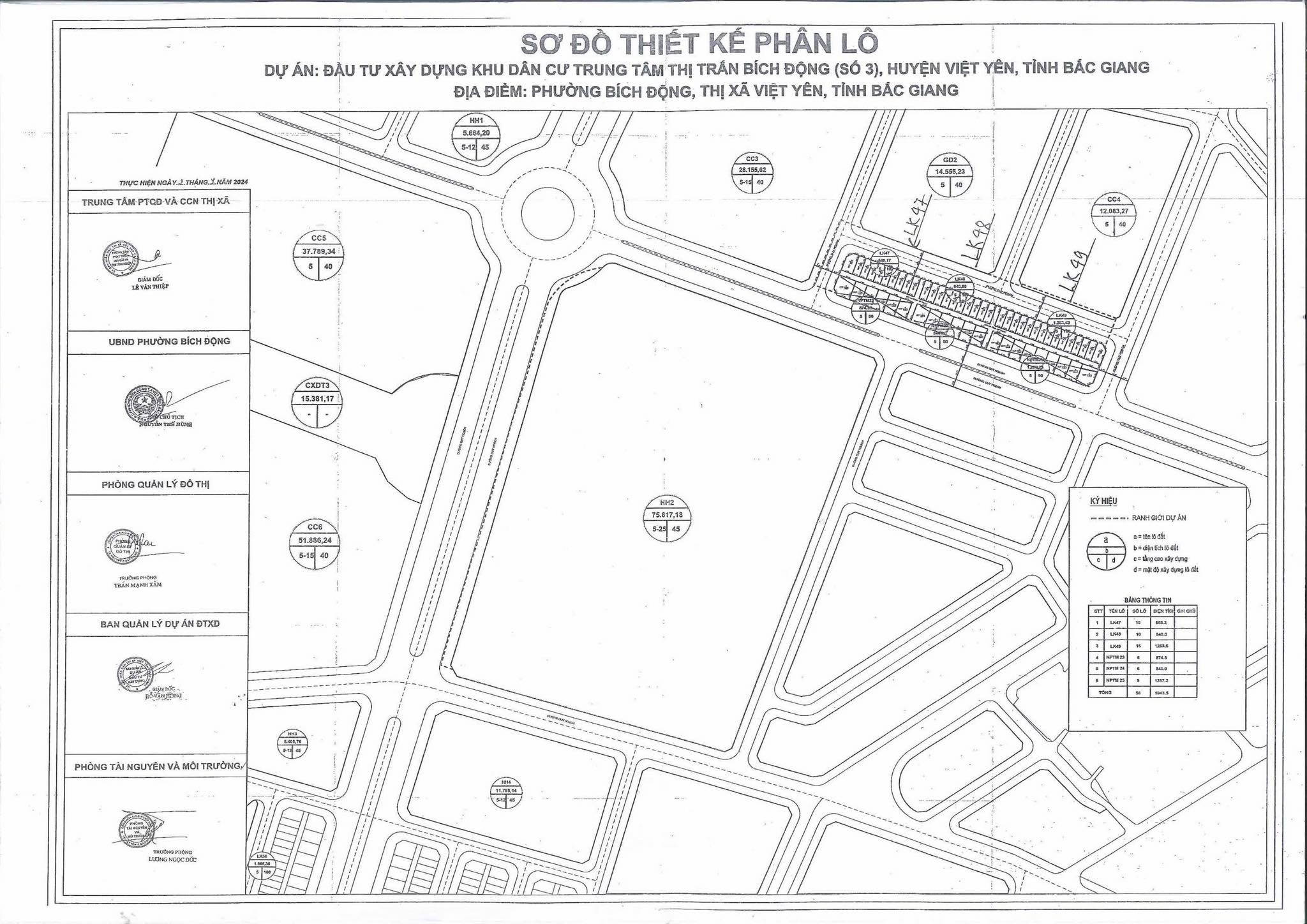 Sơ đồ thiết kế phân lô khu dân cư trung tâm (số 3) phường Bích Động, thị xã Việt Yên. (Ảnh: bacgiang.gov.vn)
