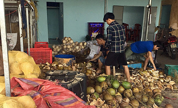 Trước đó vào ngày 4/4/2018, lực lượng Cảnh sát môi trường, Công an tỉnh Quảng Nam cũng kiểm tra và phát hiện một số công nhân của công ty Trần Phú đang gọt vỏ, sơ chế các quả dừa trên nền sàn nhà.