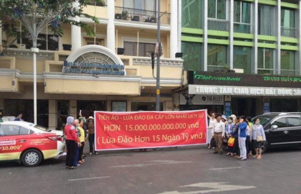 Gần đây, nhiều người đã đến trước trụ sở công ty Modern Tech trên đường Nguyễn Huệ, Q.1, TP.HCM để treo bảng tố cáo bị công ty này lừa đảo số tiền hơn 15.000 tỷ đồng.