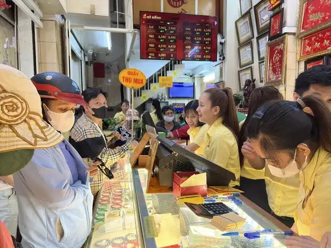 Cùng thời điểm, không khí hoàn toàn ngược lại ở Việt Nam. Vàng càng tăng giá, người dân càng đổ xô đến các tiệm vàng. Nhiều cửa hàng vàng phải hạn mức giao dịch với từng khách hàng để đảm bảo đủ lượng vàng bán ra.