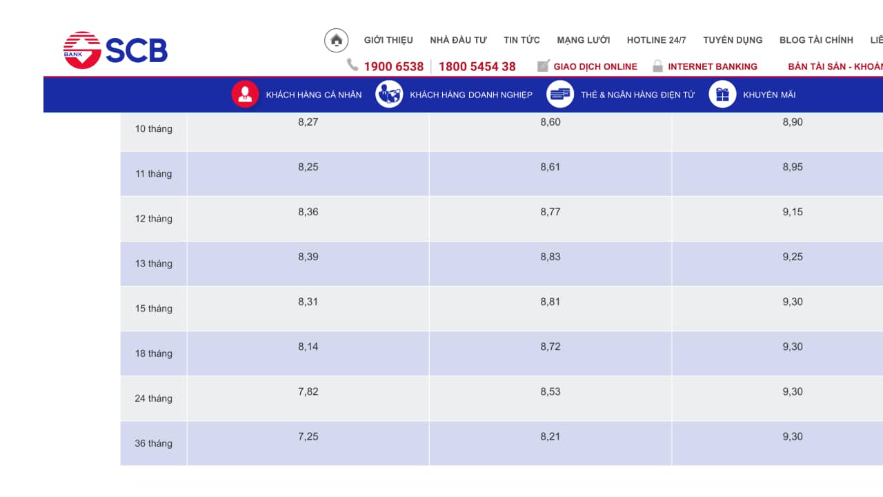 Cụ thể, ngân hàng SCB cho biết kỳ hạn dưới 6 tháng, lãi suất đều được áp dụng mức trần của Ngân hàng Nhà nước đưa ra là 6%/năm.