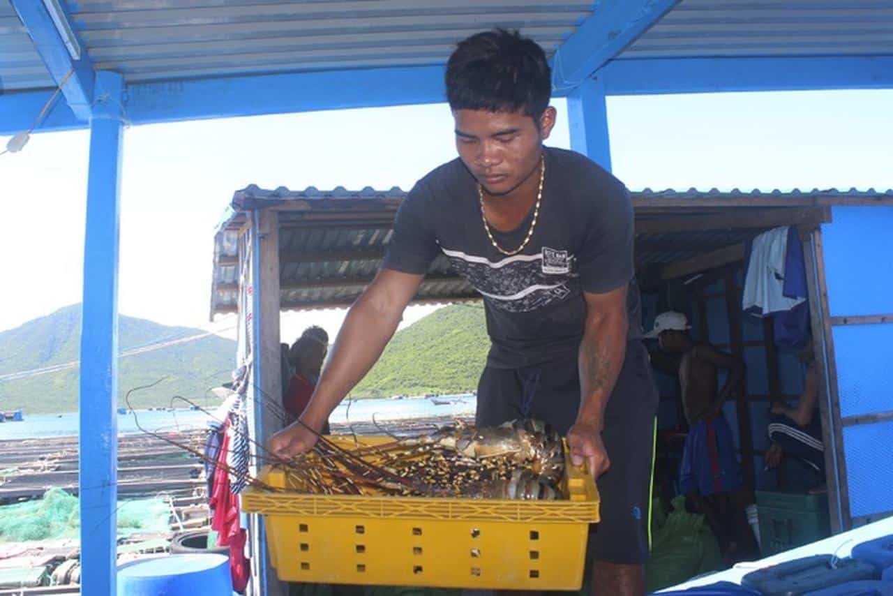 Tôm hùm bông đang được các hộ nuôi bán với giá 1-1,3 triệu đồng/kg, giảm một nửa so với cách đây hai tháng. Mức này giảm 45% so với cùng kỳ năm ngoái. Nguyên nhân là sức tiêu thụ ở thị trường trong nước và xuất khẩu đều giảm mạnh.