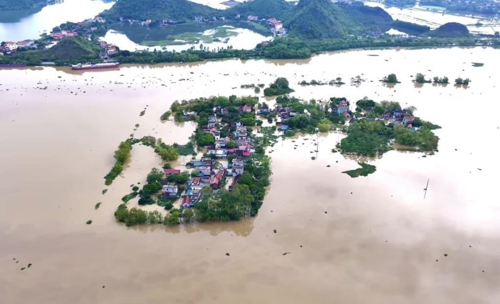 Thôn Đồng Tiến, xã Gia Tiến, huyện Gia Viễn (tỉnh Bình Bình) ngập sâu trong nước lũ. (Ảnh: Chụp màn hình video/Thiet Nguyeen/Facebook)
