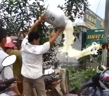 Mới đây, trên mạng xã hội lan truyền video một nông dân tại thị xã Thái Hòa (Nghệ An) đã đổ sữa trắng cổng một trạm thu mua sữa của Vinamilk gần đó.