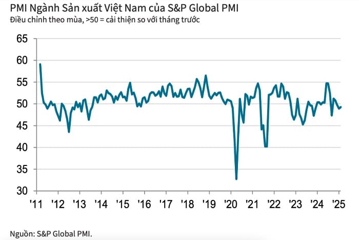 Andrew Harker, Giám đốc Kinh tế tại S&P Global Market Intelligence, bình luận: “Các nhà sản xuất ở Việt Nam tiếp tục báo cáo tình trạng nhu cầu yếu trong tháng 2, và ngành sản xuất đã phải chật vật để lấy lại động lực trong năm 2025 tính đến thời điểm này. Ở một khía cạnh tích cực hơn, các công ty ngày càng lạc quan về xu hướng sản lượng trong tương lai, mặc dù niềm tin kinh doanh thường dựa trên hy vọng rằng các điều kiện kinh tế sẽ ổn định trong những tháng tới.