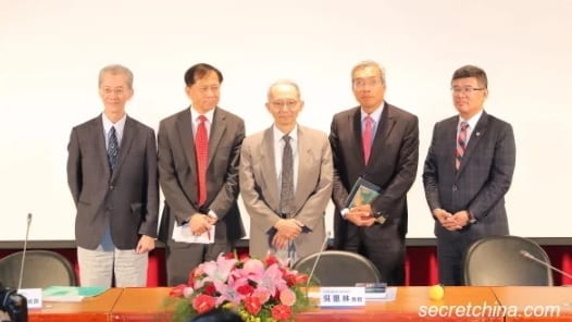 Từ trái sang phải, Giáo sư Minh Cư Chính, Giáo sư Tạ Điền, Giáo sư Ngô Huệ Lâm/Wu Huilin, Tổng biên tập Tạ Kim Hà, Tiến sĩ Ngô Kim Long (Ảnh: Secret China)