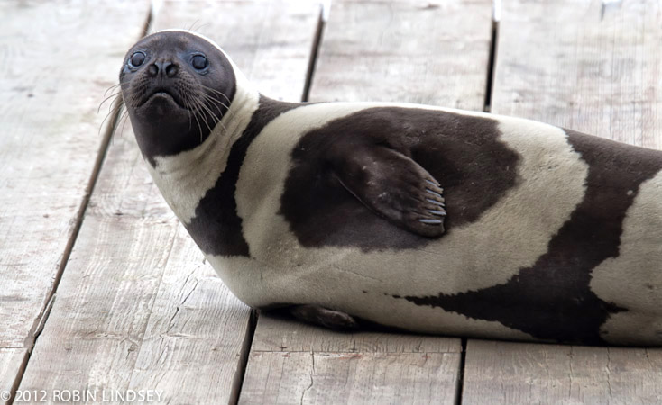 Có rất ít người nhìn thấy hải cẩu ruy băng, thật ra chúng phân bố rộng rãi ở Bắc Thái Bình Dương và sông băng ở Bắc Băng Dương. Khi mới sinh, cả cơ thể của hải cẩu ruy băng có màu trắng, sau khi lớn lên thì lại trở thành màu đen với 4 vòng trắng.