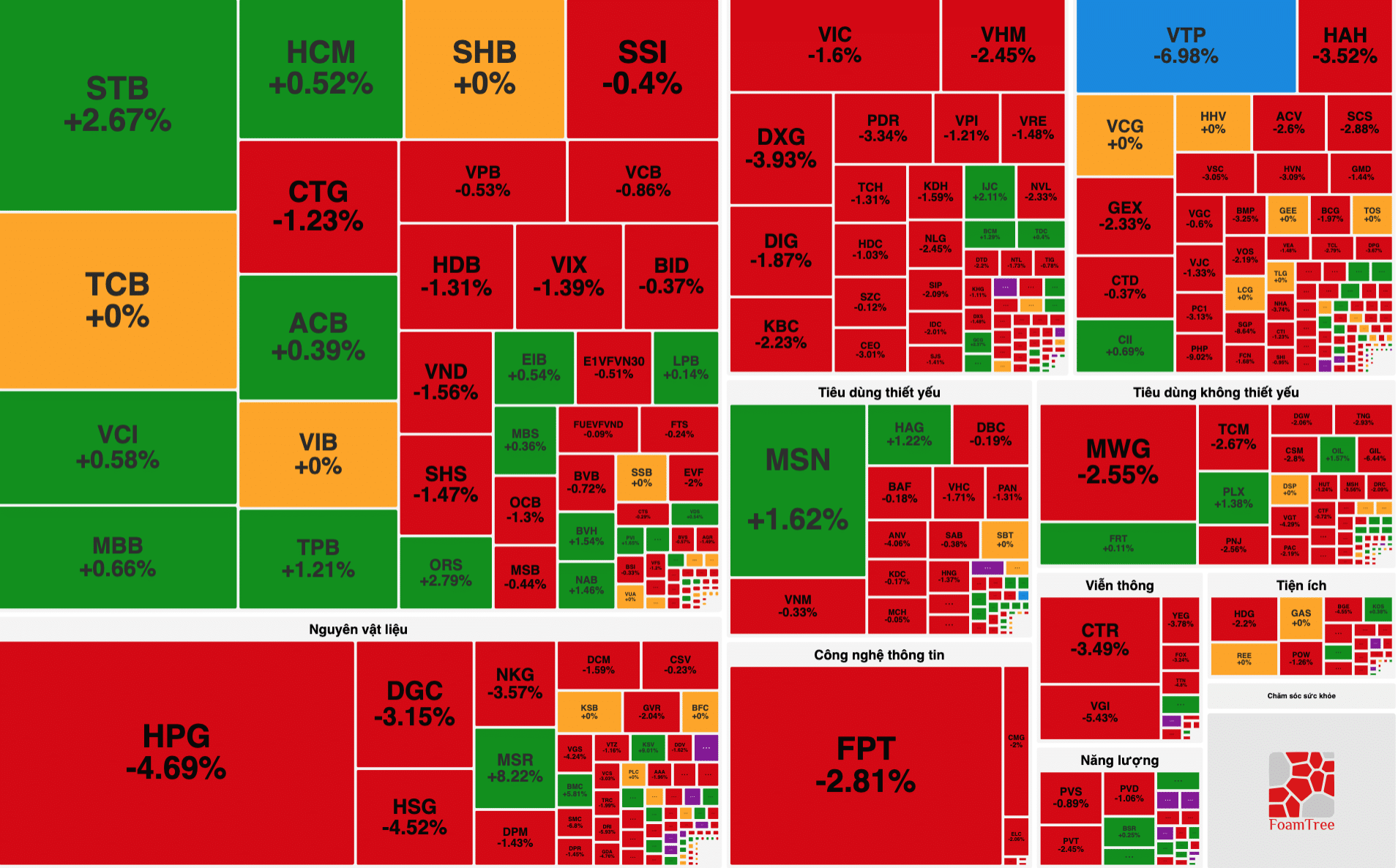 Các cổ phiếu ảnh hưởng tăng điểm bao gồm STB, MSN, BCM, .. trong khi các cổ phiếu giảm tập trung vào HPG, FPT, VCB, VHM, …