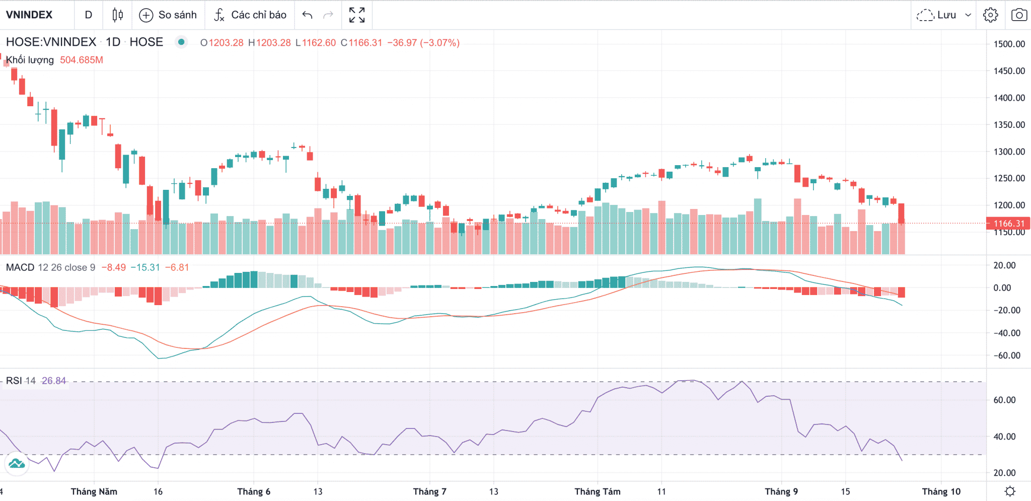 Phiên giao dịch sáng ngày 26/9 và đầu phiên chiều, chỉ số VN-Index của thị trường chứng khoán Việt Nam rớt thêm hơn 34,5 điểm, xuống mức thấp nhất trong hơn 2 tháng qua.