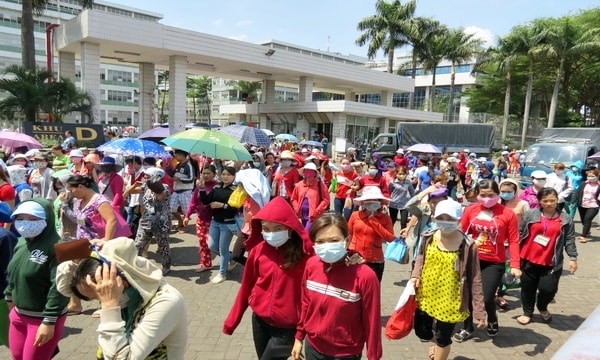Công nhân Công ty TNHH PouYuen Việt Nam, trong một cuộc đình công vào tháng 3/2015. (Ảnh: baobaohiemxahoi.vn)