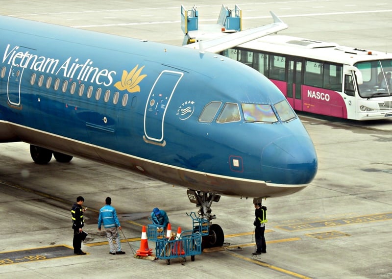 Một chiếc Airbus A321 của hãng hàng không Vietnam Airlines tại sân bay Nội Bài (Hà Nội), 2018. (Ảnh minh họa: Chanchura Pratanrad/Shutterstock)