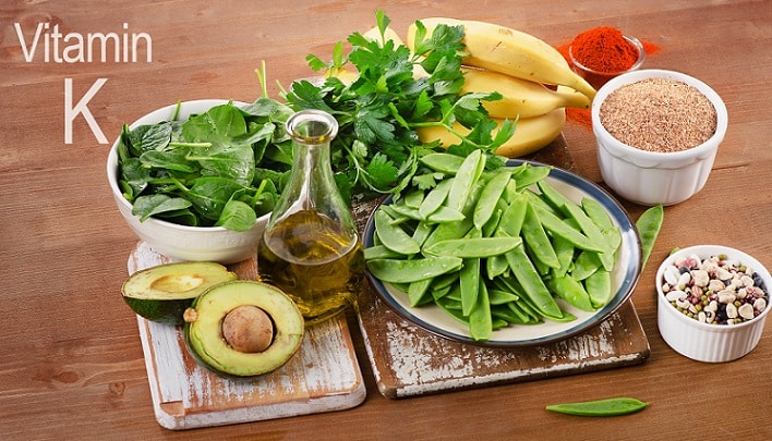 Vitamin K có sẵn trong nhiều loại thực phẩm hàng ngày như rau bina, bông cải, cải xoăn, rau diếp, bắp cải, bí ngô, măng tây, lựu, chuối, bơ,…