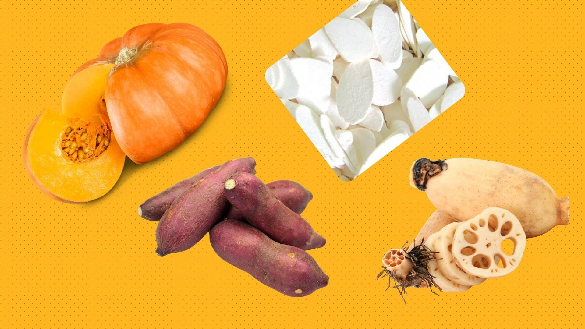 Một số thực phẩm như củ mài (hoài sơn), bí đỏ, khoai lang và củ sen không chỉ tốt cho tiêu hóa mà còn có thể giúp ngăn ngừa viêm loét dạ dày, hỗ trợ nhu động ruột đều đặn và giảm mức đường máu.