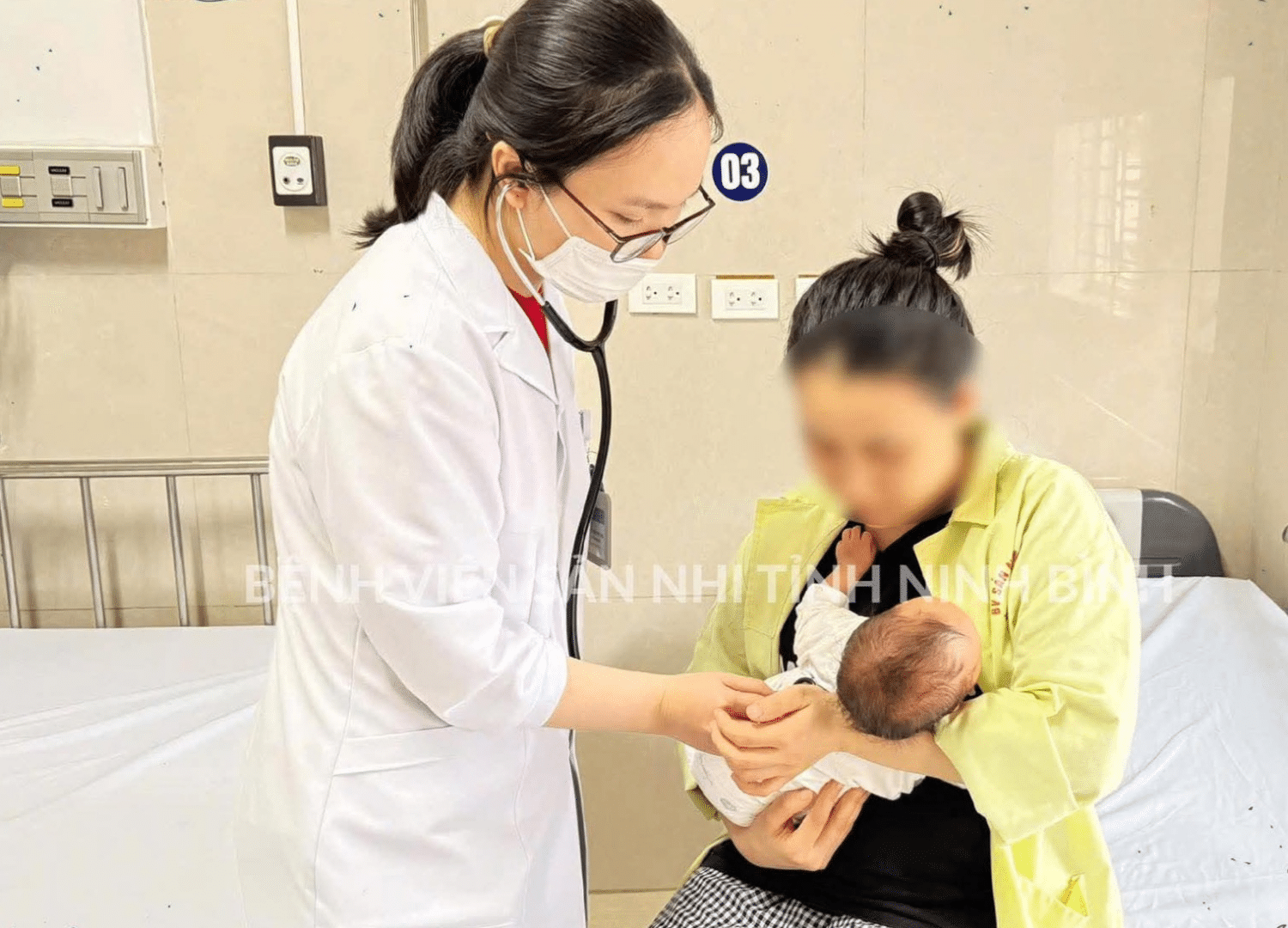 Khi được tiếp nhận vào khoa Cấp cứu – Bệnh viện Sản Nhi Ninh Bình, bé trai Đ.N.M.C (1 tháng tuổi) có trạng thái quấy khóc, thở nấc.