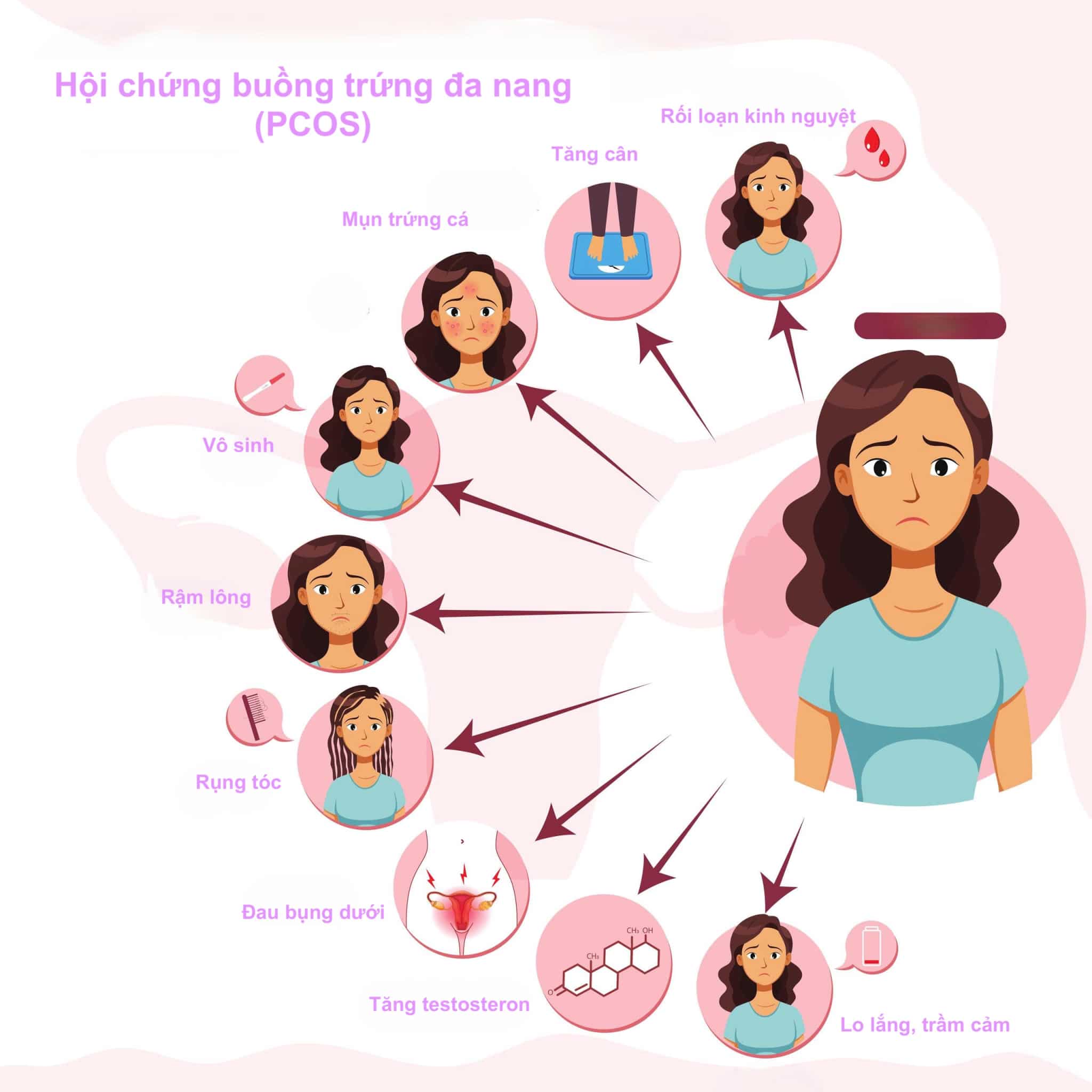 Tỷ lệ phụ nữ mắc hội chứng buồng trứng đa nang (PCOS) đang có xu hướng gia tăng qua từng năm. Đây là một rối loạn nội tiết chuyển hóa phức tạp, với các triệu chứng thường gặp như rối loạn kinh nguyệt, mụn trứng cá, rậm lông ở mặt và thân, rụng tóc kiểu nam giới, kháng insulin, tăng cân khó kiểm soát và rối loạn ăn uống. Nếu không được điều trị thích hợp, PCOS có thể dẫn đến những biến chứng nghiêm trọng như vô sinh, tiểu đường type 2, bệnh tim mạch, và các rối loạn về sức khỏe tâm thần.