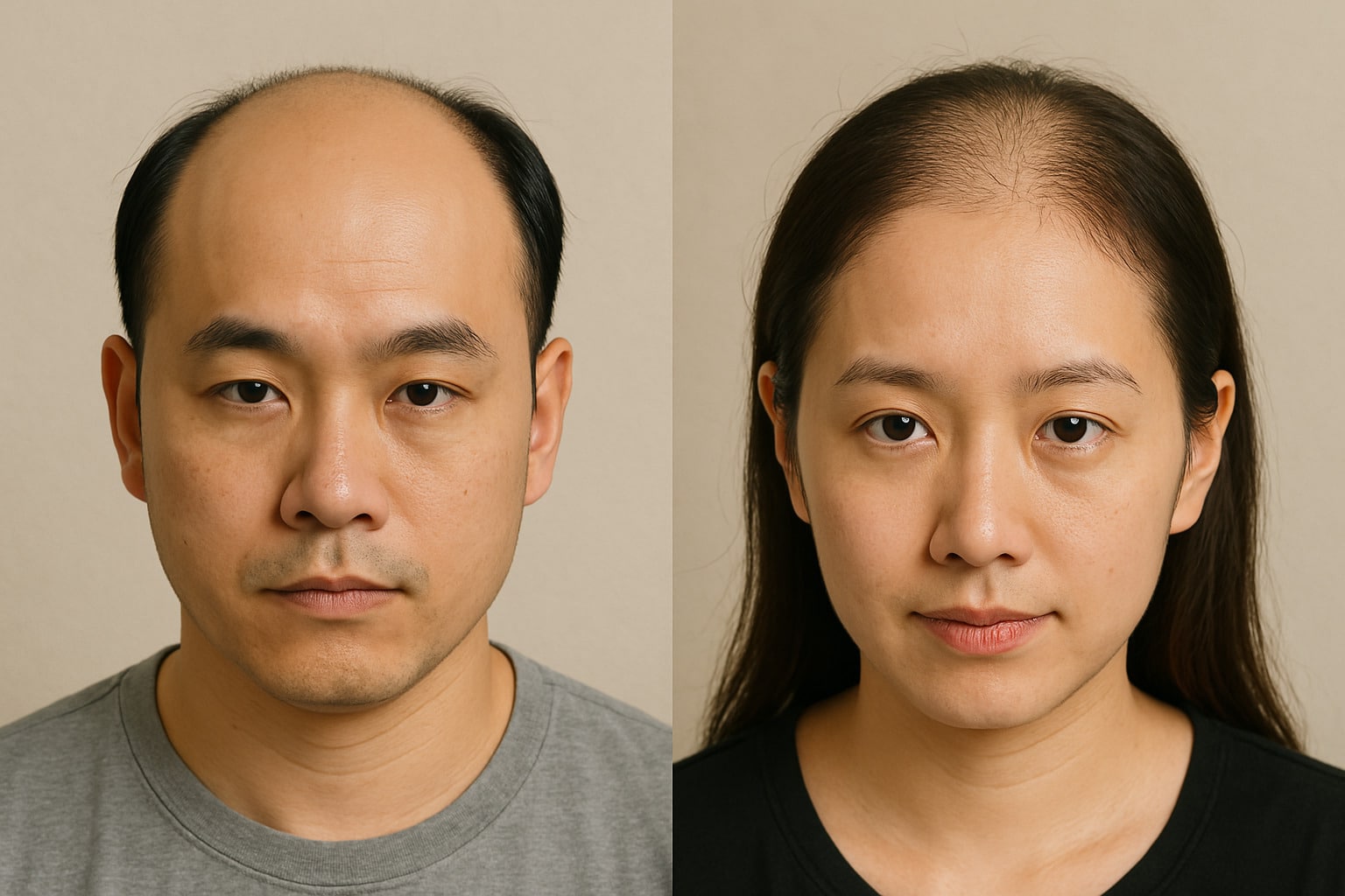 Kiểu rụng tóc trong chứng rụng tóc androgenetic khác nhau giữa nam giới và phụ nữ.