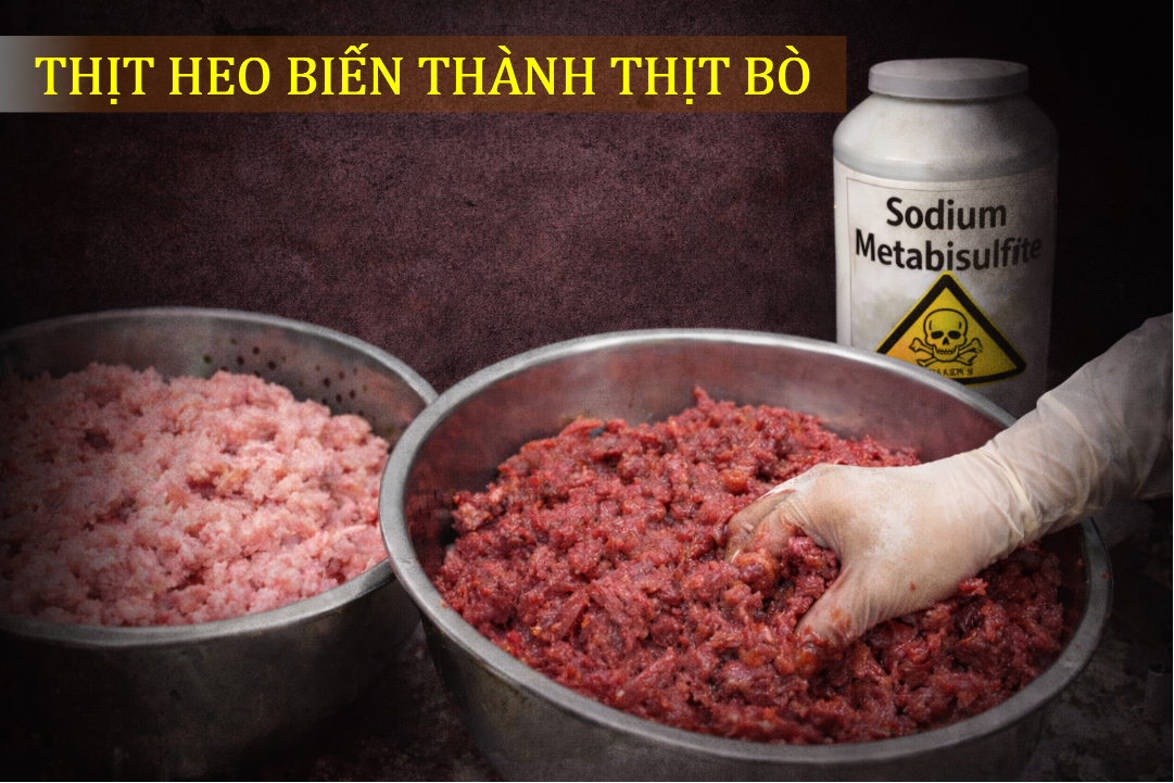 Sodium Metabisulfite là hóa chất rất rẻ, dễ mua, nên dễ bị lợi dụng trong gian lận. Khi dùng trong thịt, nó giúp thịt đỏ đẹp, lâu ôi, nhưng cũng che giấu tình trạng hư hỏng và làm sai lệch cảm quan, khiến người tiêu dùng mất khả năng nhận biết.