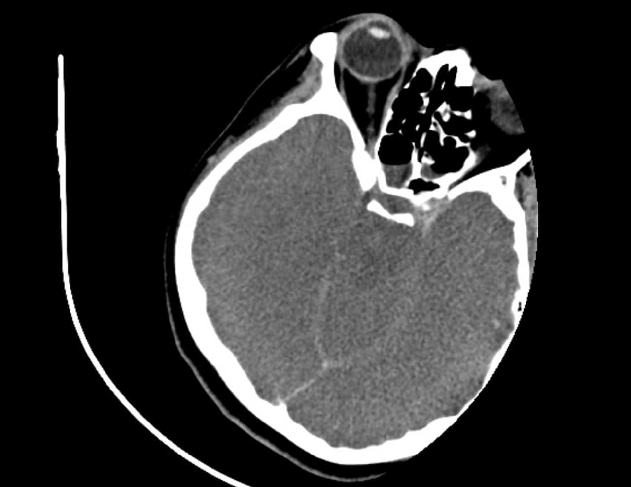 Phim chụp cho thấy não của bệnh nhân T. bị tổn thương, phù nề (Ảnh: bachmai.gov.vn)