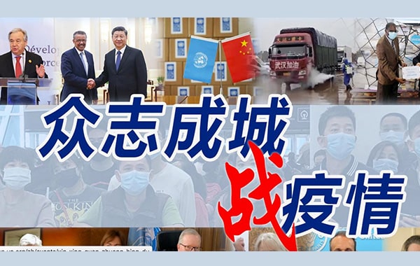 Trên trang web phiên bản tiếng Trung của Liên Hiệp Quốc còn viết như sau: “Đồng tâm hiệp lực chiến đấu với dịch bệnh”.