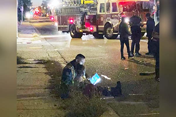 Lính cứu hỏa Mỹ đọc truyện cho bé gái tại hiện trường vụ tai nạn