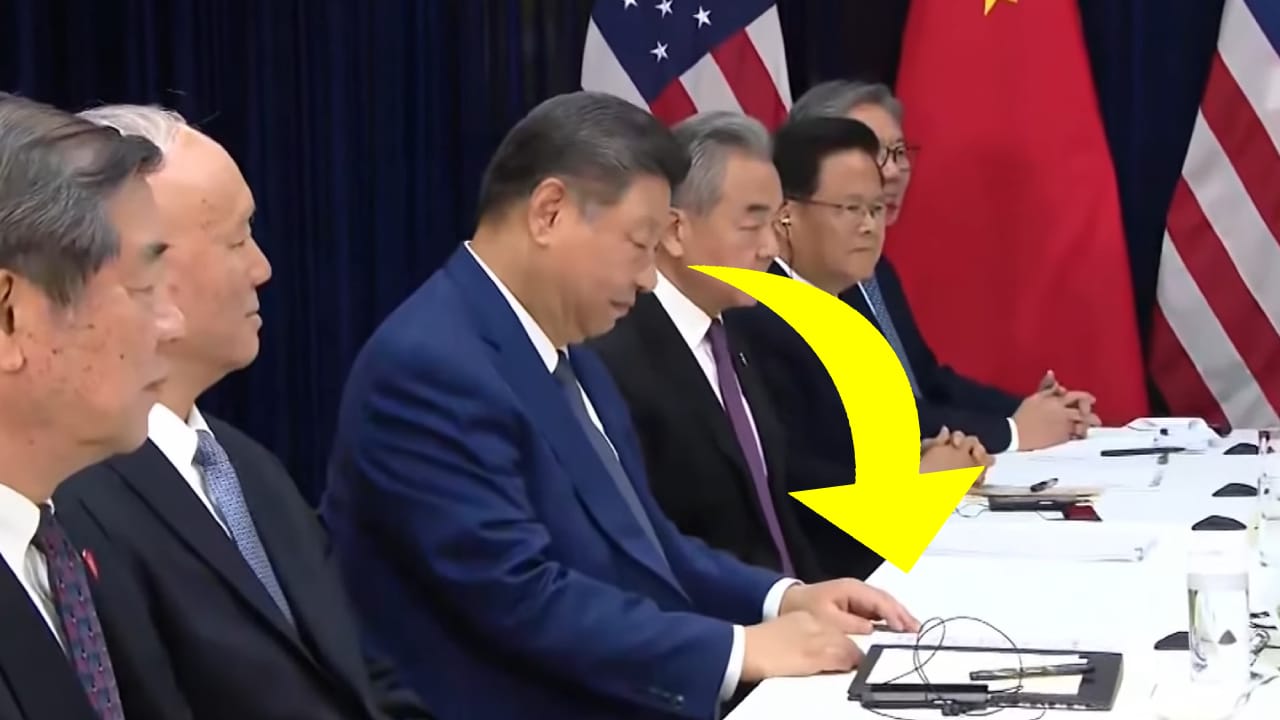 Lãnh đạo Đảng Cộng sản Trung Quốc Tập Cận Bình đọc diễn văn tại chỗ, bị Tổng thống Mỹ Donald Trump nhìn chằm chằm.