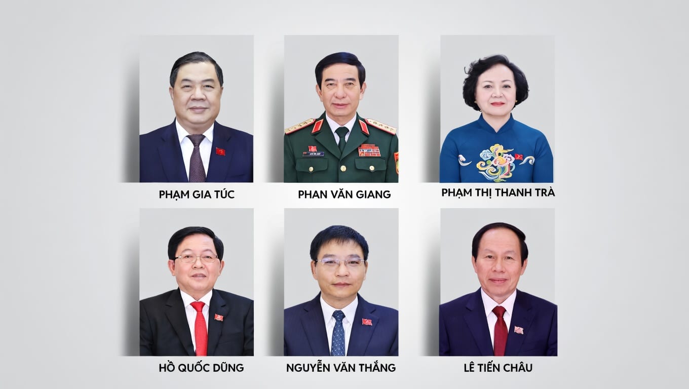 Các ông, bà: Phan Văn Giang; Phạm Gia Túc; Phạm Thị Thanh Trà; Hồ Quốc Dũng; Nguyễn Văn Thắng; Lê Tiến Châu đã được Quốc hội phê chuẩn bổ nhiệm làm Phó Thủ tướng Chính…