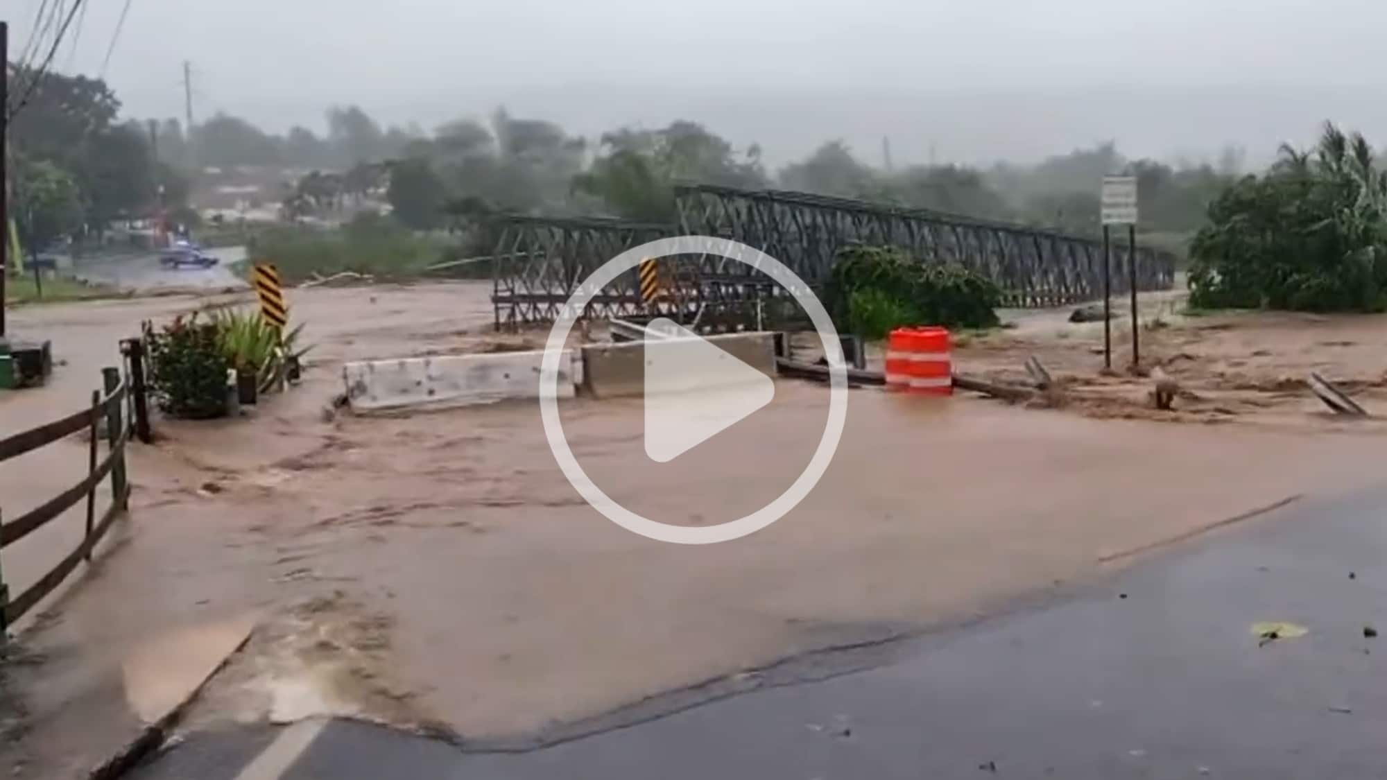 Khoảnh khắc nước lũ cuốn trôi cây cầu sắt ở Puerto Rico