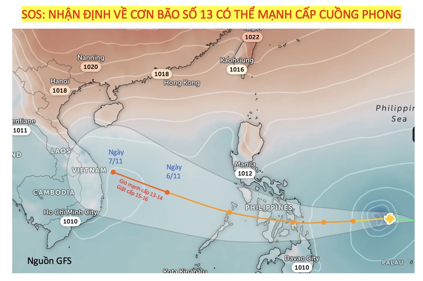 Bão Kalmeagi mạnh cấp cuồng phong, hướng về các tỉnh Trung Bộ