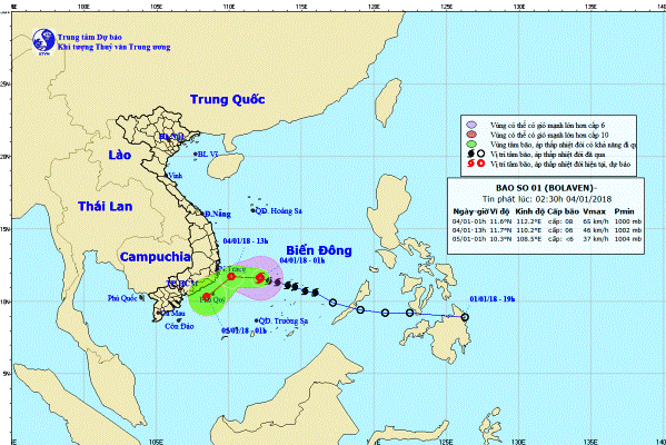 Trong 12h tiếp theo, bão số 1 (tên quốc tế Bolaven) sẽ suy yếu thành áp thấp nhiệt đới.