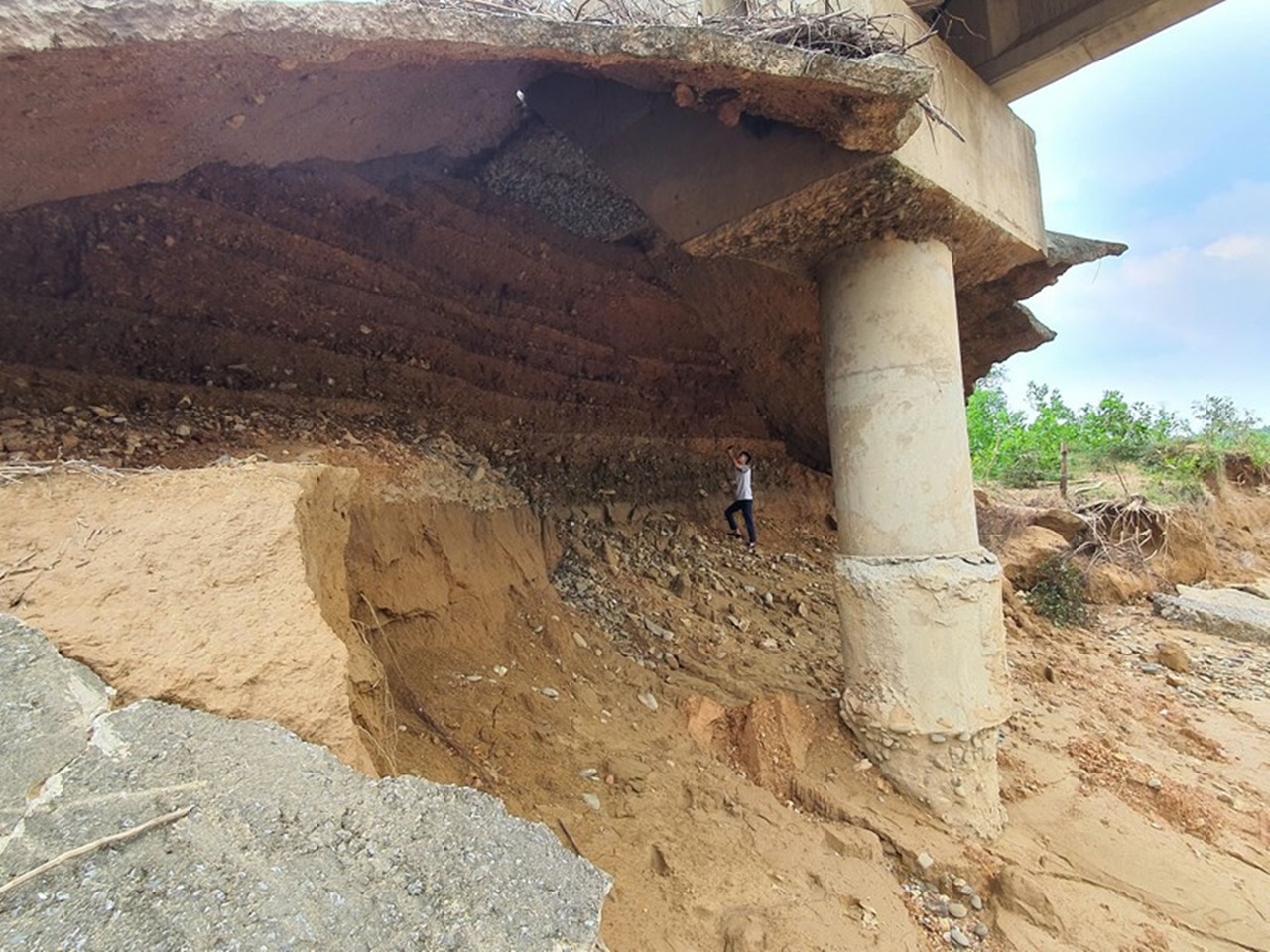 Cầu lên bản Cồn Cùng (xã Kim Thủy, huyện Lệ Thủy, tỉnh Quảng Bình) bị xói lở nghiêm trọng. Mố cầu bị sạt lở hàm ếch, trơ móng cầu, trụ cầu, một số lan can…