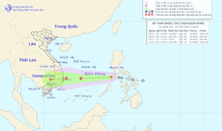 Áp thấp nhiệt đới đã vượt qua Philippines vào biển Đông Việt Nam và sẽ mạnh lên thành bão với sức gió vùng gần tâm bão mạnh cấp 8-9, giật cấp 11.
